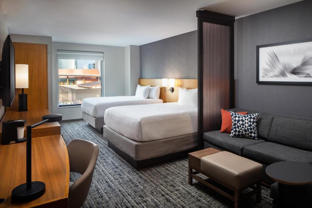 Un hotel con una ubicación inmejorable en Nashville, a pocos pasos de Broadway. Las tarifas en temporada baja parten de los US$80 por habitación doble (para dos personas) y tiene una calificación de 8,6 en Booking.com, lo que destaca su excelente ubicación. Ofrece desayuno, wifi gratis, gimnasio, restaurante, piscina, aparcamiento y cómodas habitaciones con baño privado, televisión, caja fuerte y aire acondicionado. Es una excelente opción para quienes buscan una estancia cómoda y céntrica, a poca distancia a pie.