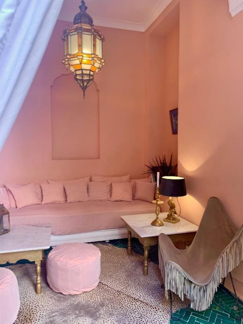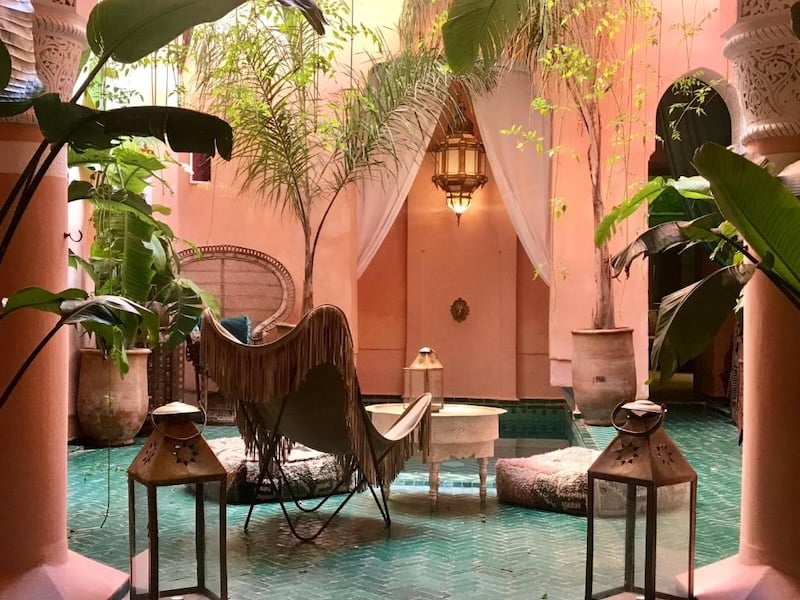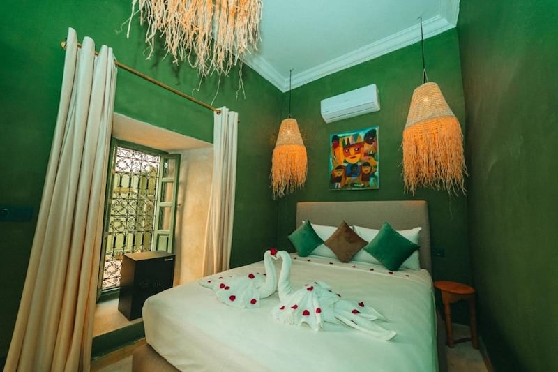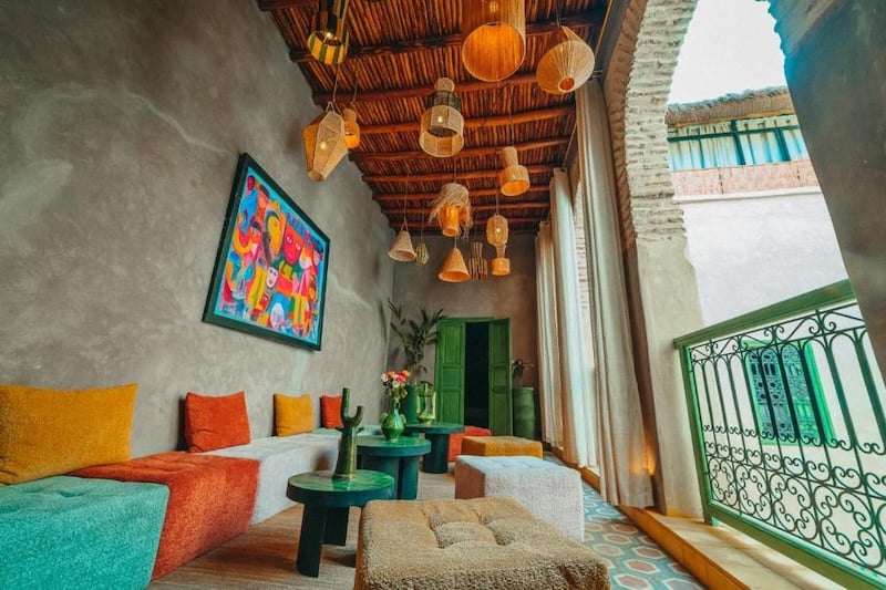This 4-star riad is a true creative retreat in the heart of Marrakech. With rates starting at around €150 for two people, it has an excellent average rating of 9.6. Guests praise the original décor, calm atmosphere, and personalized service. The property includes breakfast, an outdoor pool, a restaurant, air-conditioned rooms, and a lush courtyard filled with plants — perfect for relaxing after exploring the medina.